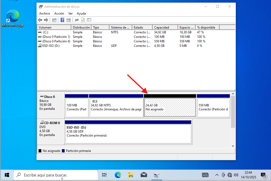 Creamos una partición del disco en Windows