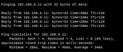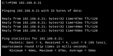 Cuando todo esté configurado, realizamos pruebas de conectividad usando el comando ping:
