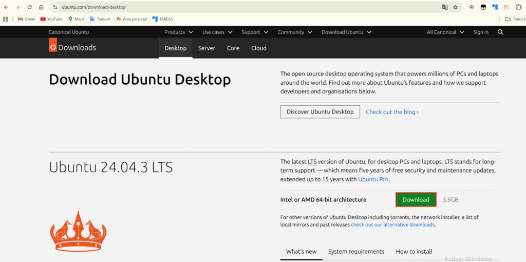 Lo primero es descargar la ISO oficial desde la web de Ubuntu: