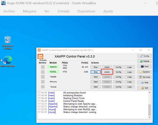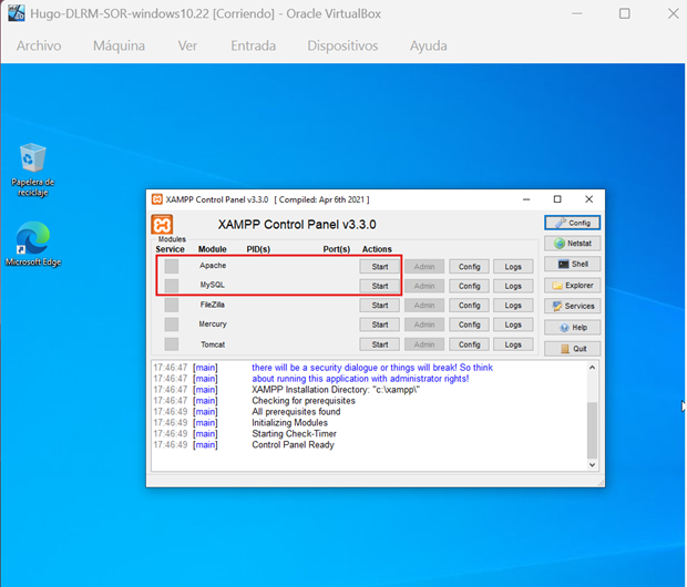 2. Iniciar los módulos de Apache y MySQL