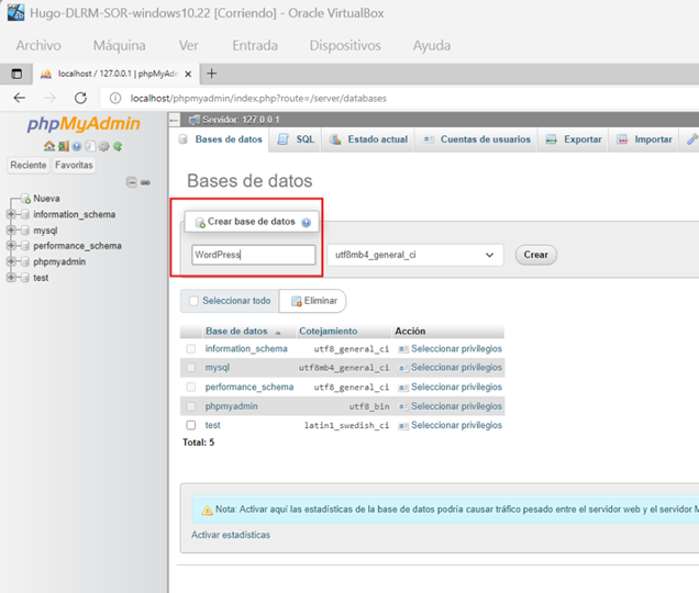 3. Crear una base de datos en phpMyAdmin
