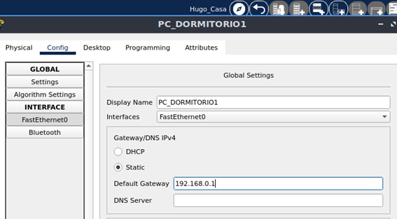 PC_Cocina→ 192.168.0.11PC_Dormitorio1→ 192.168.0.10